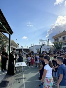 Την Τετάρτη 11 Σεπτεμβρίου πραγματοποιήθηκε στο σχολείο μας ο αγιασμός για την έναρξη της φετινής σχολικής χρονιάς, ο οποίος τελέστηκε από τον ιερέα του χωριού π. Εμμανουήλ Παπαδάκη, παρουσία εκπαιδευτικών μαθητών και γονέων.