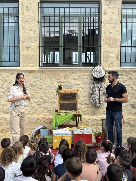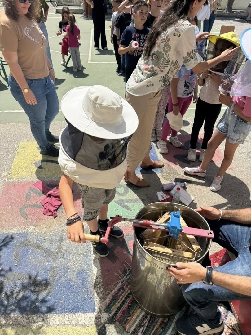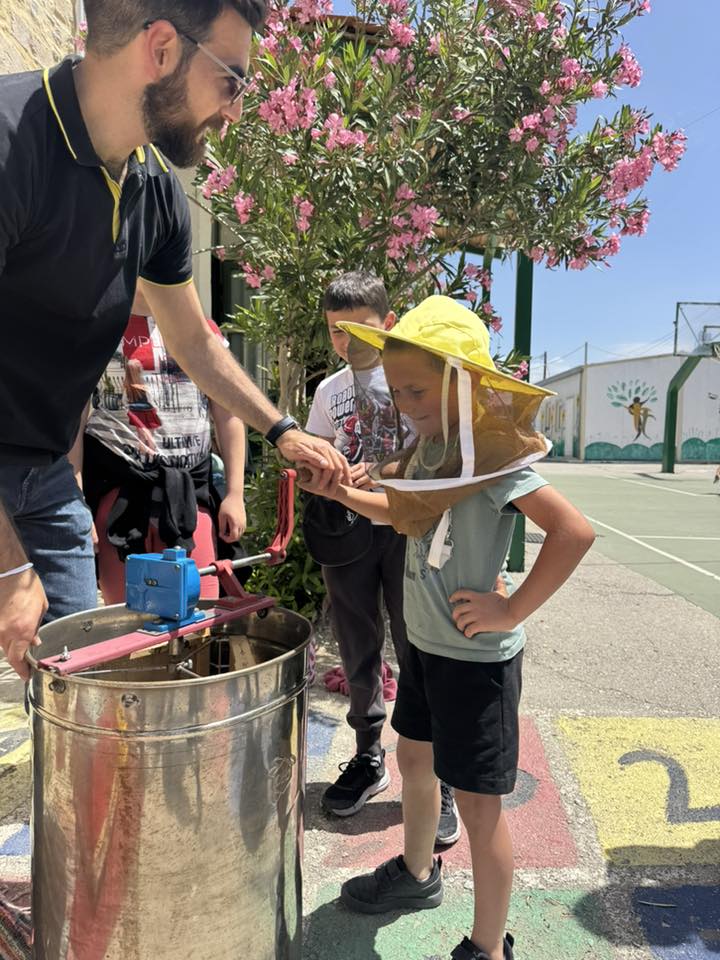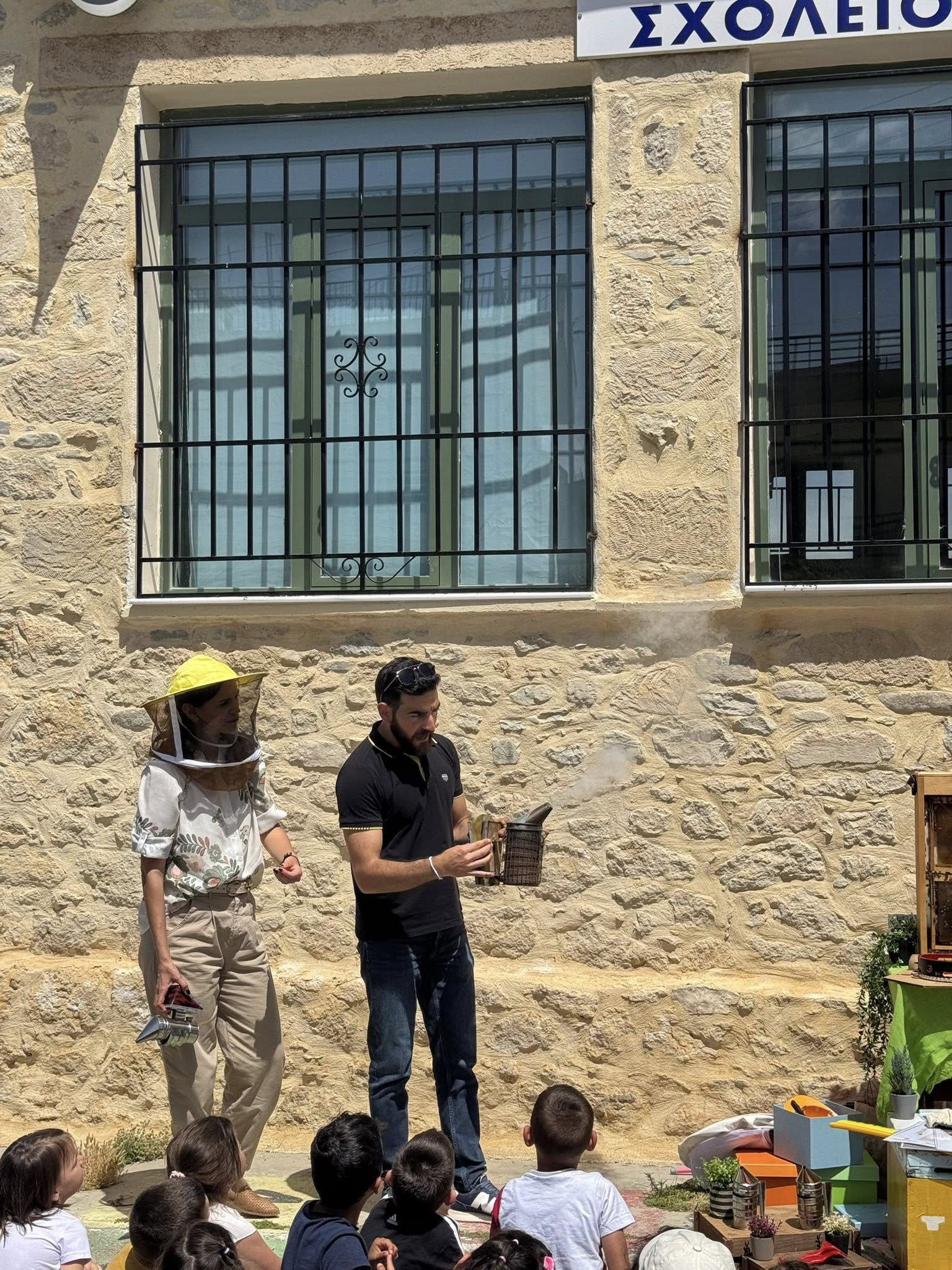 Τα παιδιά γνώρισαν τη μαγική διαδικασία παραγωγής του μελιού και έμαθαν τη ζωτική σημασία της μέλισσας για την ισορροπία του οικοσυστήματος, καθώς συμβάλλει καθοριστικά στην επικονίαση και στη διατήρηση της βιοποικιλότητας.