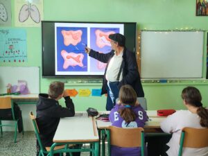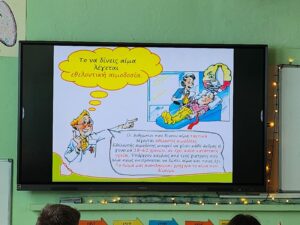 Επιθυμώντας τη δημιουργία κατάλληλων συνθηκών για τη διοργάνωση εθελοντικής αιμοδοσίας, ο Παγκρήτιος Σύνδεσμος Εθελοντών Αιμοδοτών & Δωρητών Οργάνων Σώματος «Αιματοκρήτης» και ο δήμος Γόρτυνας πραγματοποίησε στο σχολείο μας δράση η οποία είχε ως στόχο την ευαισθητοποίηση των μαθητών και εκπαιδευτικών για τη σημασία της δωρεάς αίματος. Η αιμοδοσία είναι μια απλή, ασφαλής διαδικασία που μπορεί να σώσει ζωές. Κάθε φιάλη αίματος μπορεί να βοηθήσει πολλούς ανθρώπους σε ατυχήματα, χειρουργεία ή ασθένειες. Στην παρουσίαση, ενημερωθήκαμε για τα οφέλη της αιμοδοσίας, τις προϋποθέσεις και τη διαδικασία, ενώ μάθαμε πώς μπορούμε να συμβάλουμε όλοι στην ενίσχυση της προσφοράς αίματος.